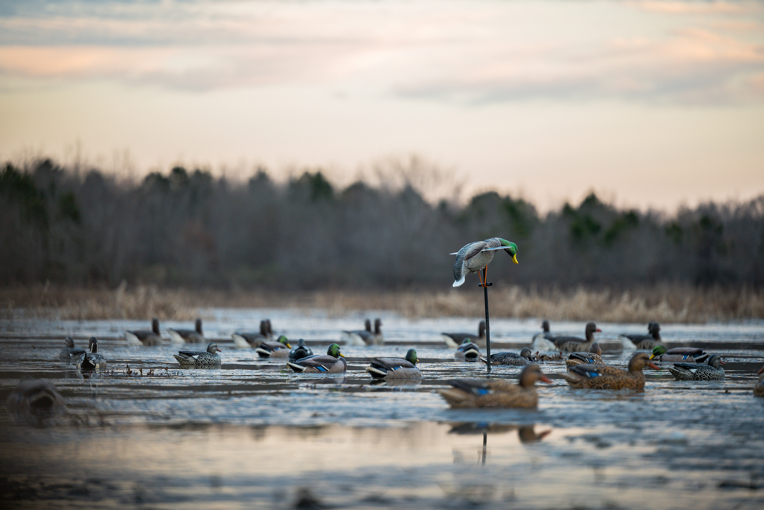 Additionally, varying the types and species of decoys can enhance the realism of the spread. Mixing species or using darker decoys can add both visibility and depth and make the spread appear more dynamic. For water setups, adding movement to your decoys is essential, and motion decoys are one of the most effective tools for creating a realistic scene that appeals to incoming ducks. Ducks naturally expect to see ripples and motion on the water, signaling the presence of other birds actively feeding or relaxing.