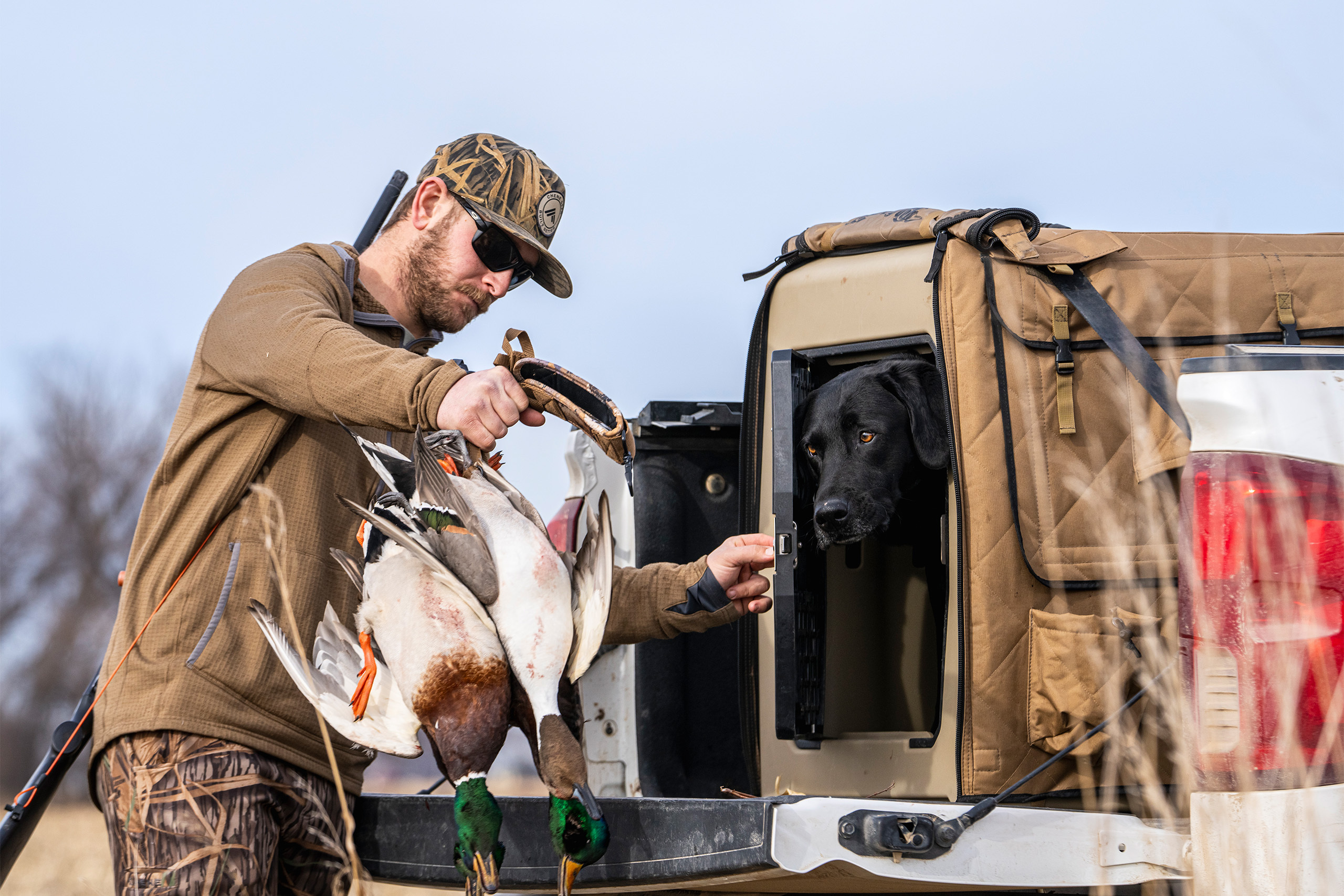 Whether you're training or hunting, a good kennel is important for keeping your dog safe and comfortable. The Lucky Duck Kennel is built with reinforced walls, secure latches, and optimal ventilation to provide your dog with a safe space. From the car to the blind, it’s a great place for your champion to rest between retrieves.